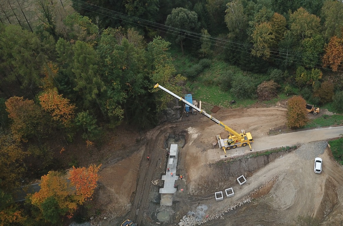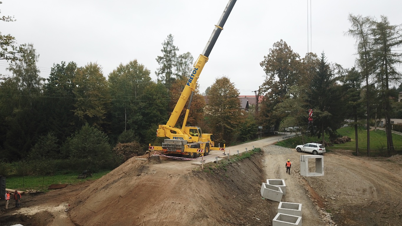 Usazovali jsme čtyřtunové části betonové propusti do Rýdlovského rybníka