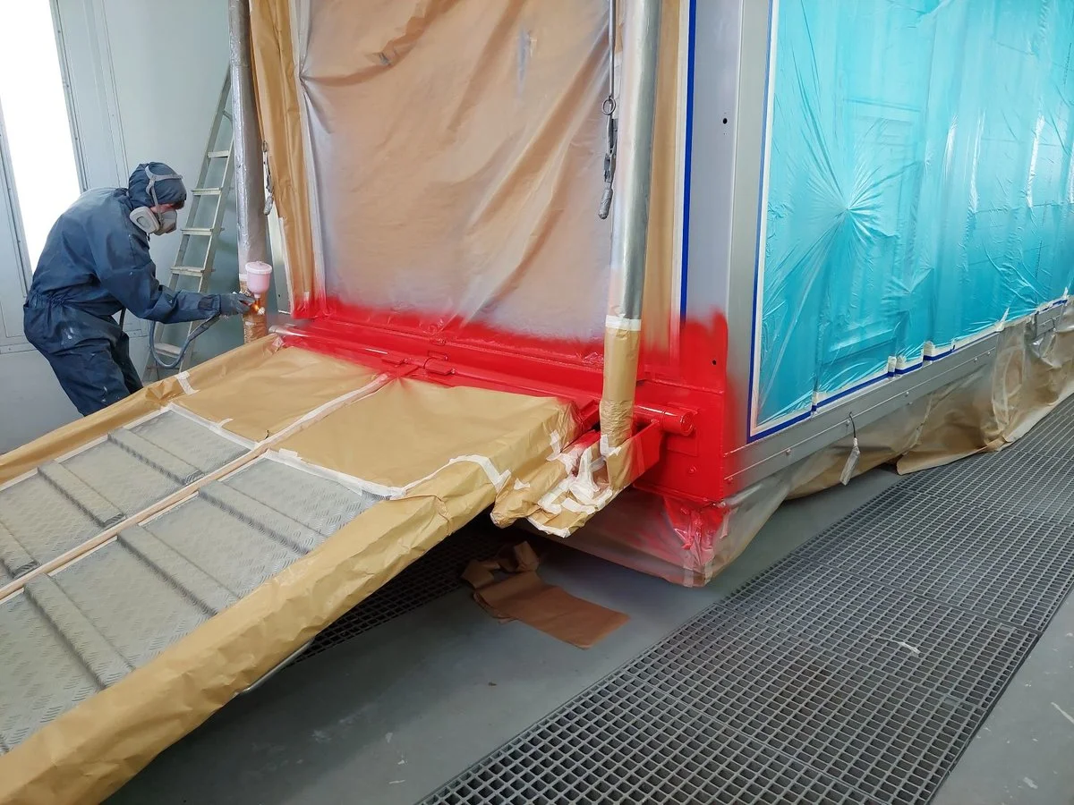 A právě v naší lakovně jsme měli za úkol provést vnější úpravu návěsu, aby kromě bezpečnostních požadavků na přepravu jezdila zvířata i stylově!