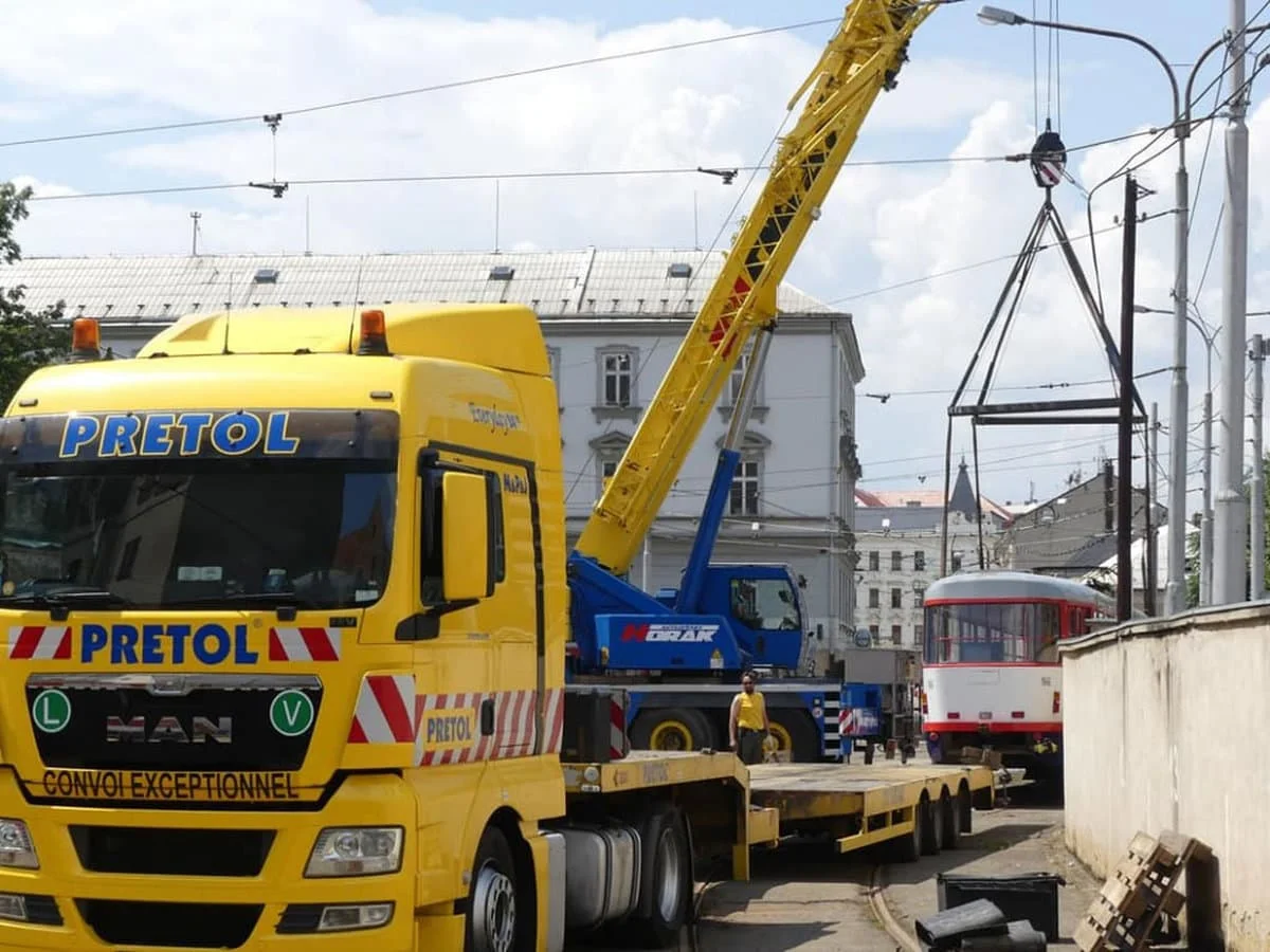 nadrozměrné přepravy tramvaj v pondělí 26. července převáželi. „Náklad vážil čtrnáct tun a měřil čtrnáct metrů,“popsal vedoucí nadrozměrné přepravy PRETOLU Milan Adamec.