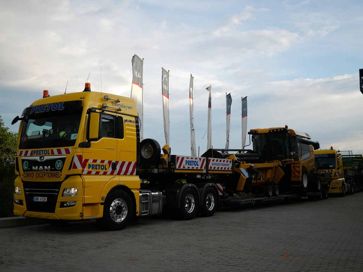 Země živitelka, kam naváželi vystavované stroje. Jednalo se například o kombajny či traktory. "Po skončení výstavy jsme stroje převáželi zase zpět. Do akce bylo zapojeno celkem osm nákladních vozidel z našeho vozového parku a samozřejmě také doprovodná osobní vozidla," upřesnil vedoucí nadrozměrné přepravy Milan Adamec.