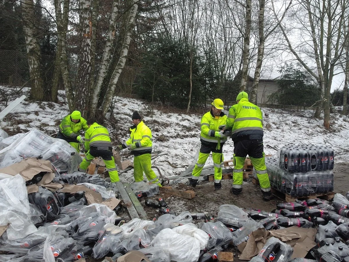 Foto 2: Překládání limonád z bouraného nákladního vozidla u Skuhrova dne 6. března 2018