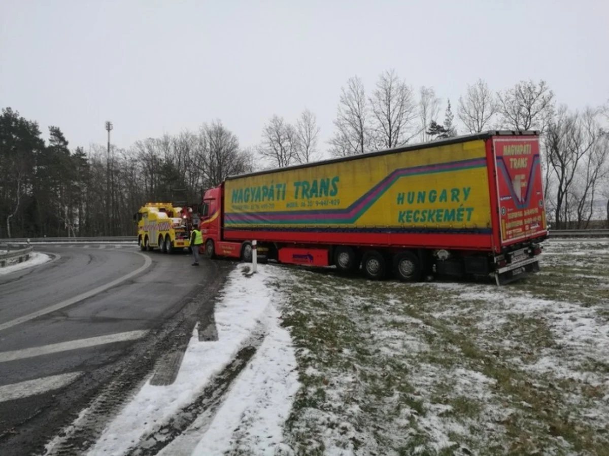 Foto 2: 1.12.2018 - Vyproštění a odtah kamionu na dálnici D1 u Lokte